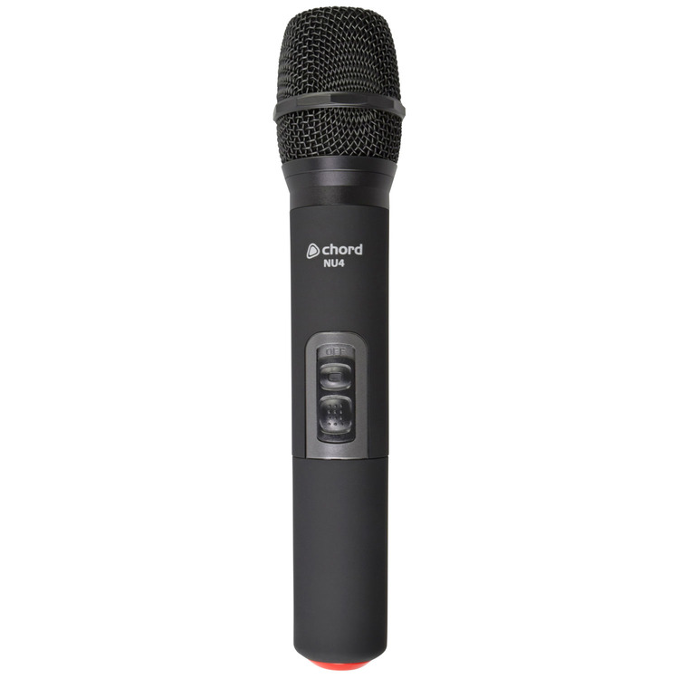 Red replacement handheld transmitter for the Chord NU4 wireless UHF system.