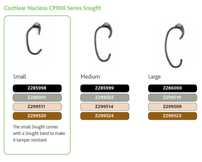 Available in 4 colours to match the processor and 3 different sizes (small, medium and large). The upper and lower earhooks are easily adjusted for a more secure fit. The small size is suitable for young children and comes with a Snugfit band to make it tamper resistant.